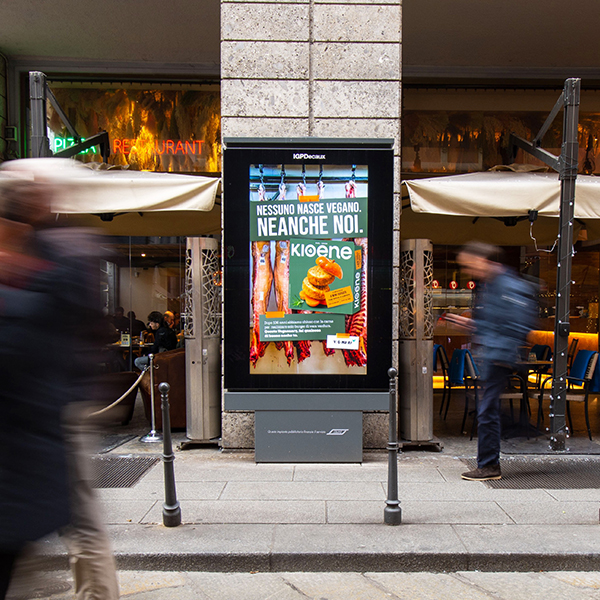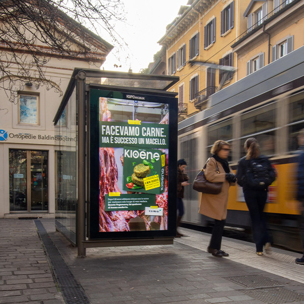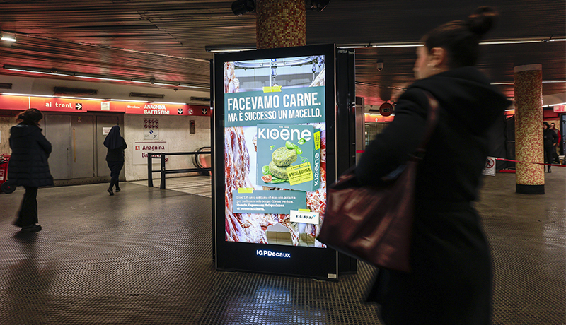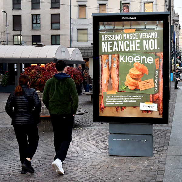 In occasione del Veganuary (*), Kioene ha scelto di affrontare una sfida che molte aziende del plant‑based evitano: rompere l’immaginario rassicurante e prevedibile del settore per raccontare la propria identità in modo radicalmente nuovo. Per farlo, aveva bisogno di un mezzo capace di sostenere un gesto narrativo forte, visibile e culturalmente rilevante. È qui che entra in gioco l’OOH di IGPDecaux.