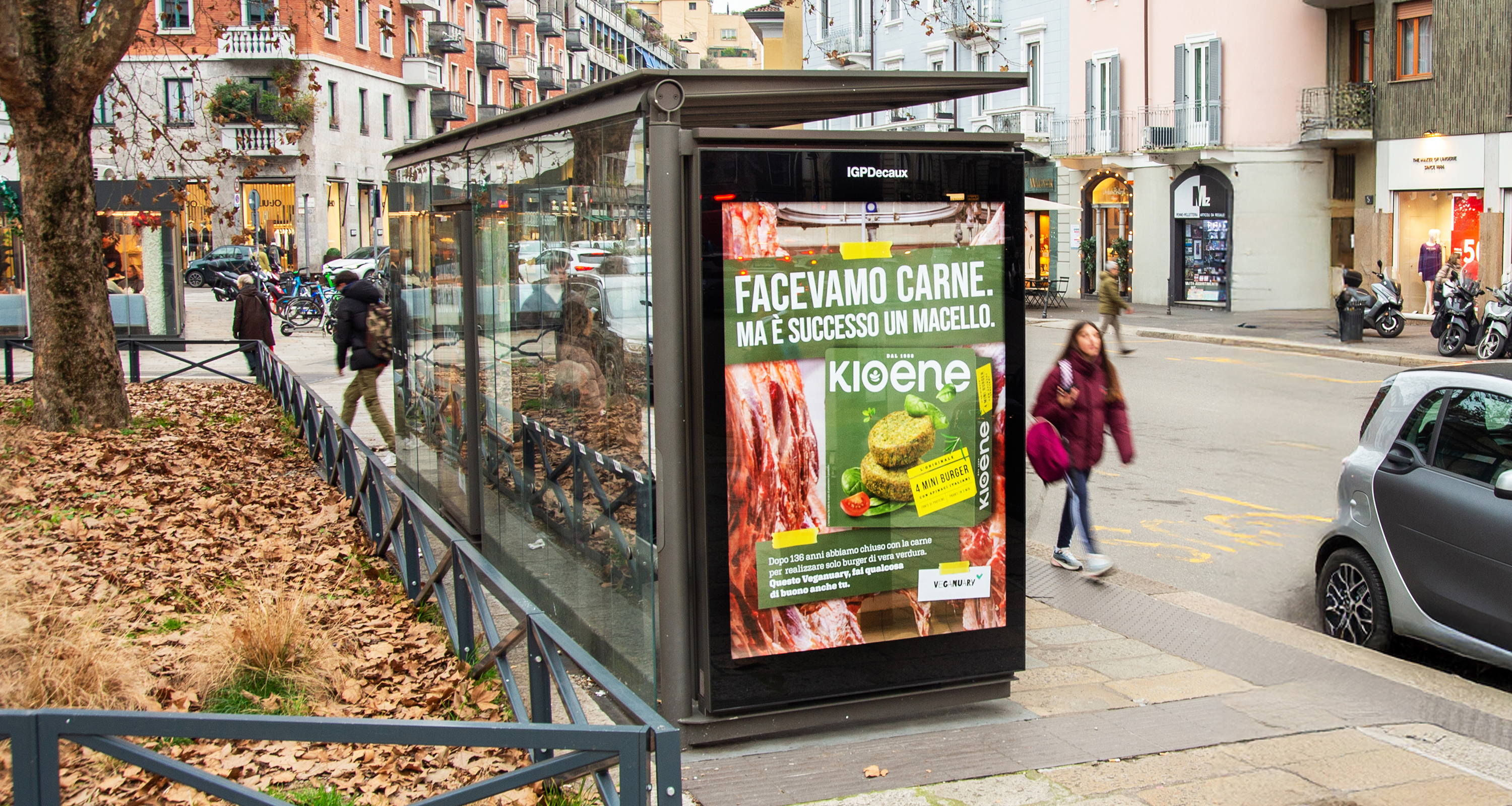 Dopo alcuni giorni, i manifesti hanno svelato la firma di Kioene e il senso dell’operazione: raccontare il proprio passaggio da produttore di carne a leader della gastronomia vegetale. Le immagini dei burger hanno completato la narrazione, trasformando lo shock iniziale in un invito alla riflessione: cambiare è possibile, per le persone come per le aziende.